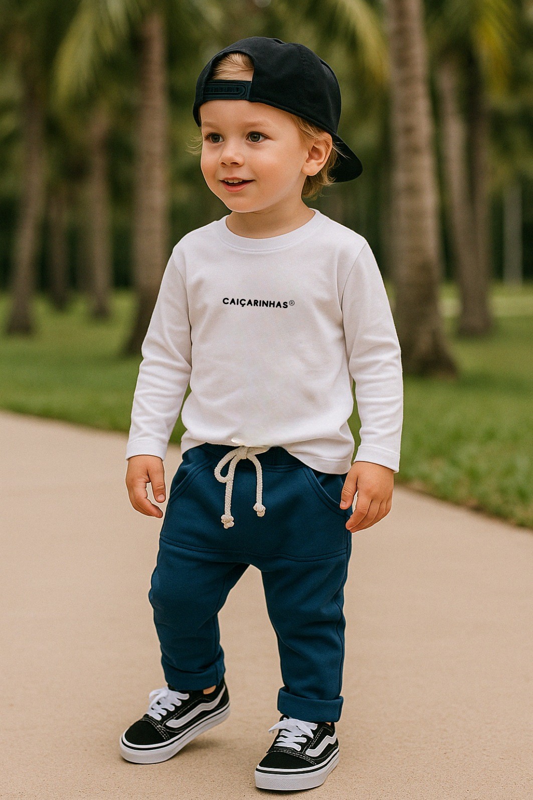 Cordão Ajustável: Permite um ajuste perfeito na cintura, garantindo que a calça se adapte ao corpo da criança