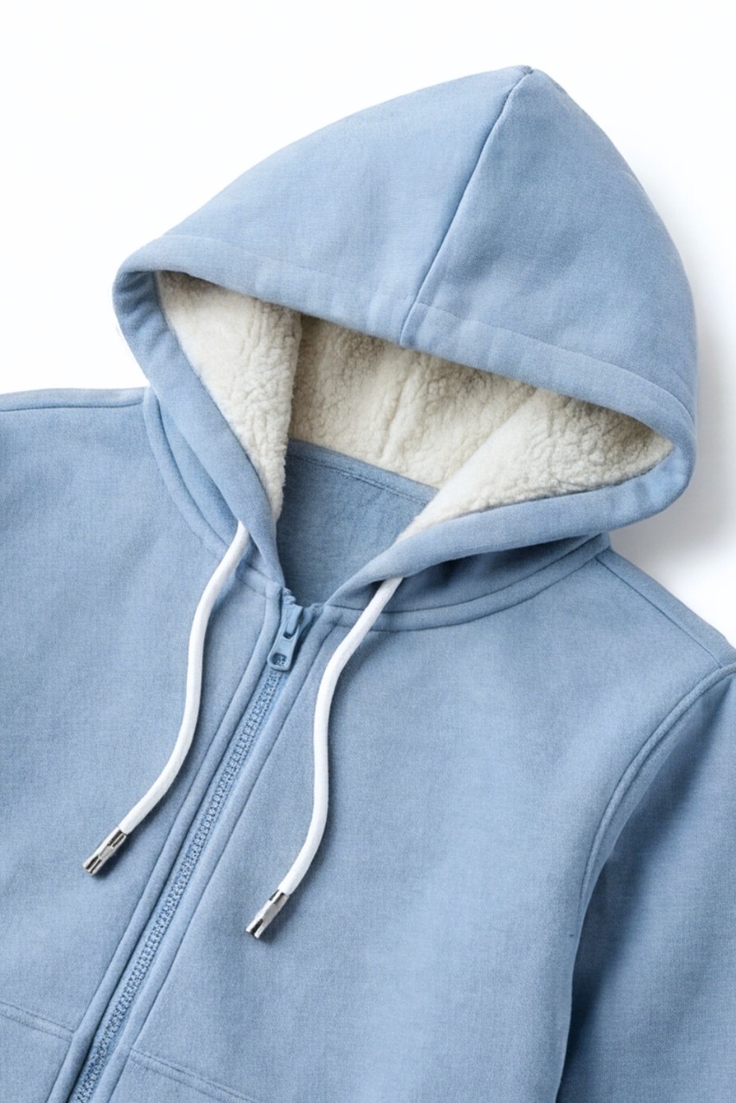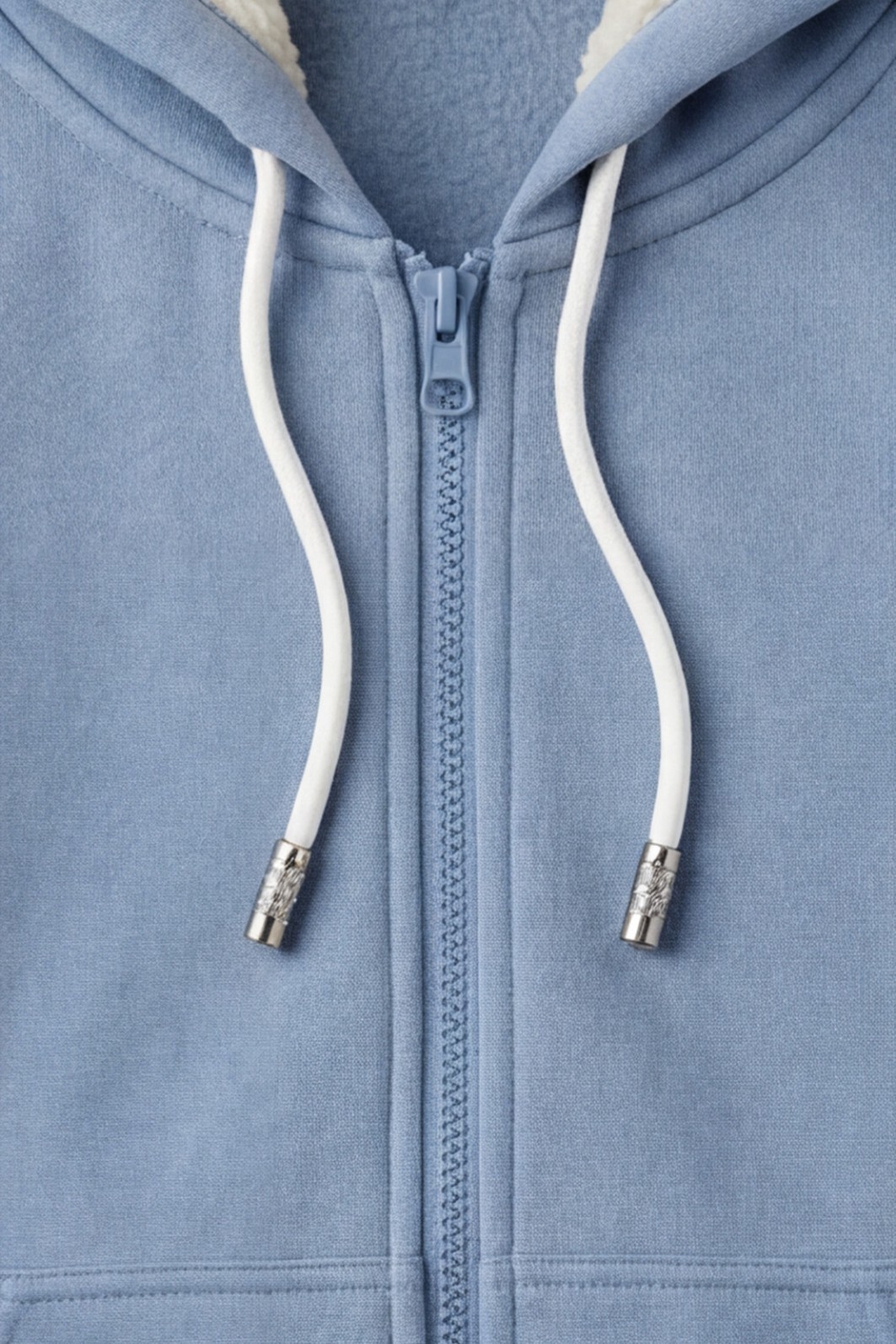 | Acabamentos Especiais | Zíper frontal | Capuz forrado | Cordão e Ponteira personalizada |
