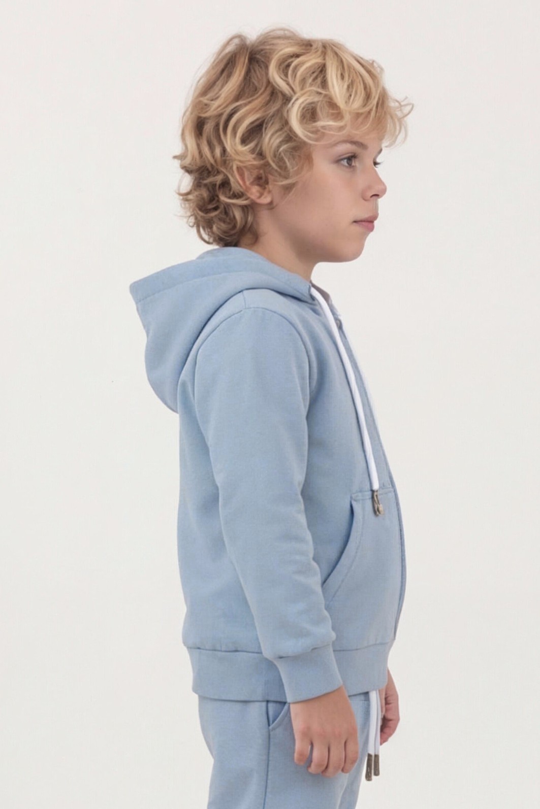 O capuz forrado oferece proteção adicional contra o vento, enquanto o zíper facilita na hora de vestir. A cor azul é versátil e prática, permitindo diversas combinações no guarda-roupa infantil.