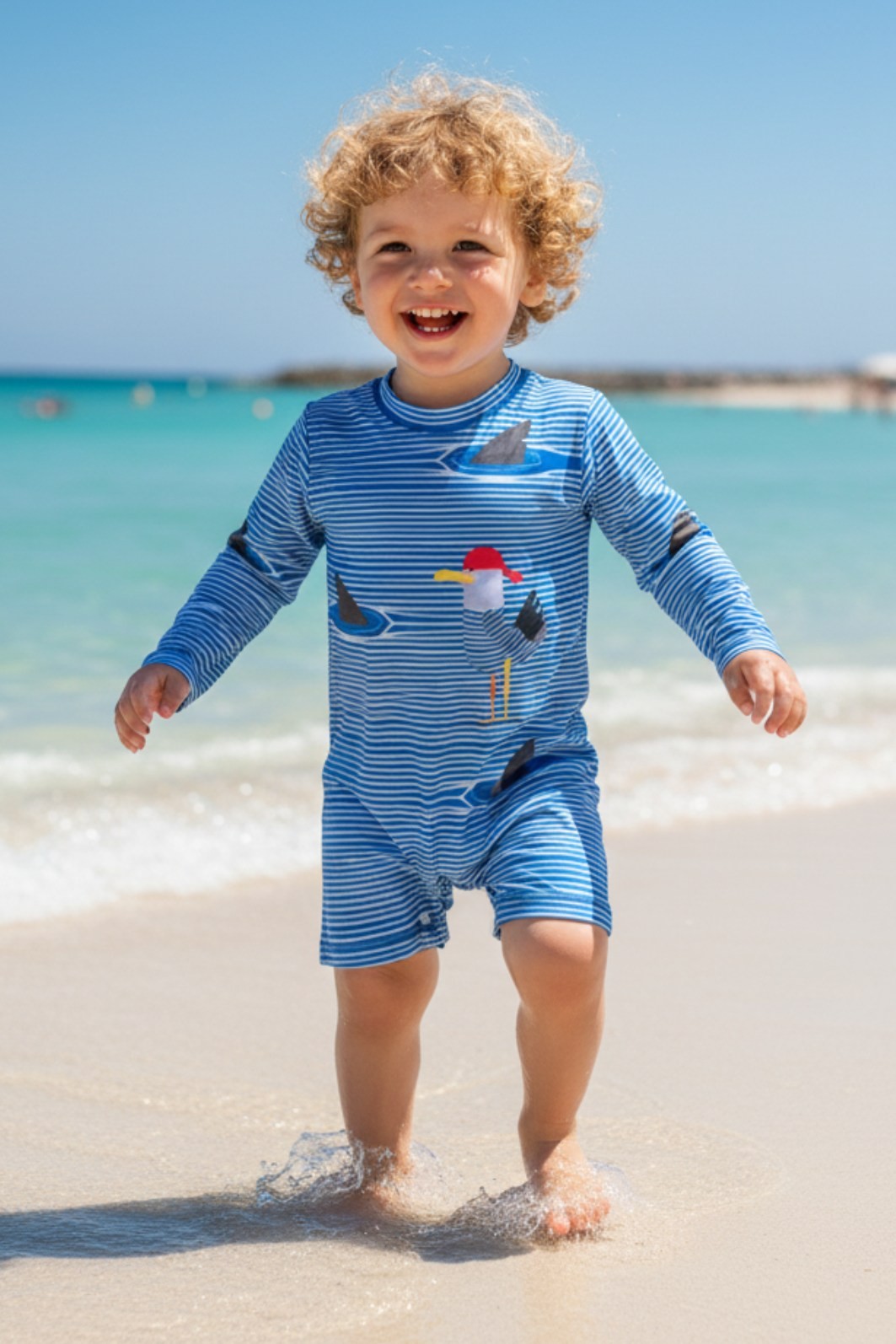 Lembrando que qualquer roupa de praia infantil não isenta a aplicação do protetor solar na criança.