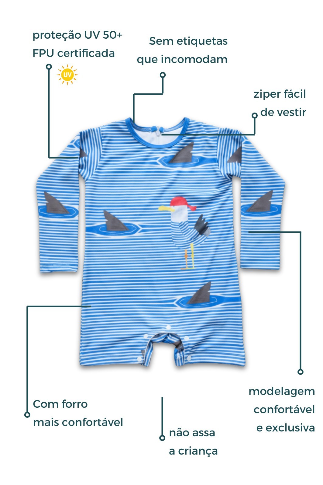 | Modelo | Macacão Praia Bebê Proteção Solar UV 50+ |
